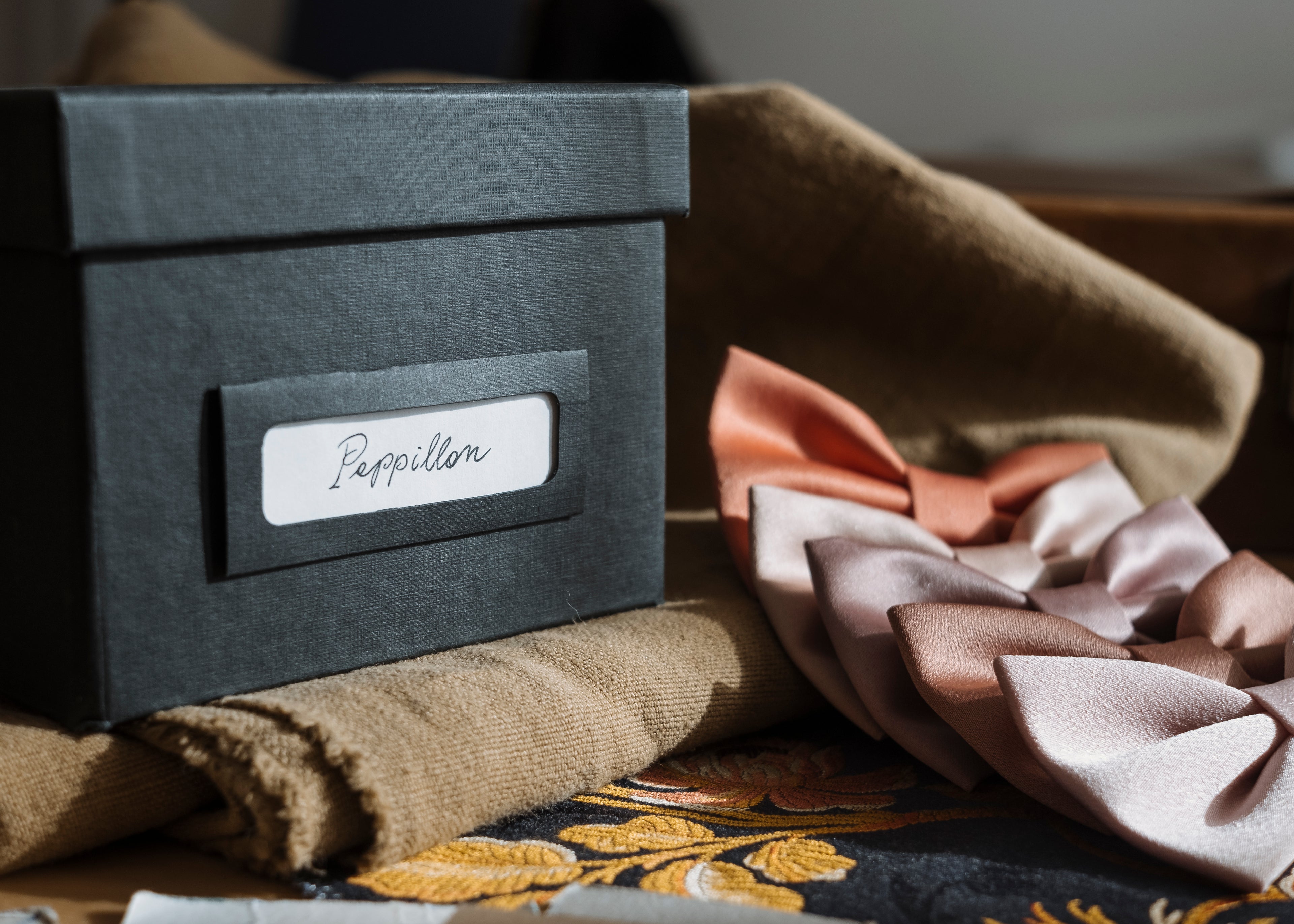 Proprio da questa attenzione per il fascino del passato e della tradizione i papillon vengono realizzati con dei campionari di tessuti vintage che erano destinati ad essere gettati via da un ex negozio di tessuti e tappezzeria.